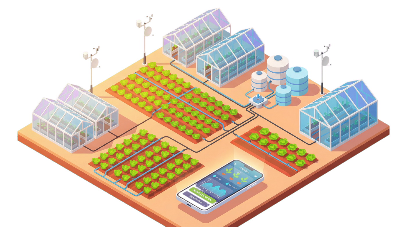 AilynDrip achieves automated, high-precision drip irrigation and fertigation for your open field farm based on real-time sensor data. Thanks to wireless and easy-to-deploy modules, you can start small and extend your automation as you grow.